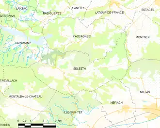 Map of Bélesta and its surrounding communes