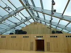 Sir Y.K. Pao Studio Today, Sir Y.K. Pao Studio, sponsored by Dr Helmut Sohmen and Professor Anna Pao Sohmen, serves as a spectacular multi-function room on the second floor of Béthanie. The room was originally a pitched roof with tiles. Due to the limited space, it was later reconstructed with a flat roof. It was not until the restoration project when the distinctive pitch roof was brought back into the design, using double-glazed panels of glass. The studio has a floor area of 21 square metres (230 sq ft) is equipped with wall mirrors, dance bars, glazed windows and other technical facilities and non-permanent seating.[16]