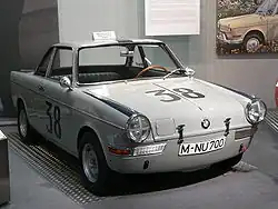 The BMW 700 is a small rear-engined car which was produced by BMW in various models from August 1959 to November 1965. It was the first BMW automobile with a monocoque structure. The 700 was a sales success at a time when BMW was close to financial ruin.[5] The 700 was also successful in its class in motorsport, both in its stock form and as the basis of a racing special called the 700RS.