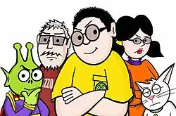 ![]() BONZZO comic characters. From left to right: Tridy, Ego Causa, BONZZO, Bogzzy and Tirillas "The Cat". | |