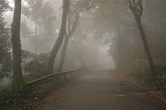 Ba Vì National Park, cloud shrouded forest on way up King High Peak to the Ho Chi Minh Temple