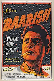 Baarish (lit.'Rain') is a 1957 Indian Hindi-language crime drama film with Dev Anand and Nutan in the lead roles. Based on the American film On the Waterfront, it is the directorial debut of Shankar Mukherjee.[1][2]