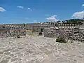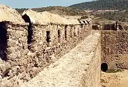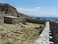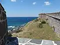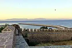 The village hosts a castle built during the Ottoman era.[7] There were a mosque, a Turkish bath and two fountains inside the castle. The Babakale Castle (Ottoman Turkish: Hırzü’l-Bahr) is situated on a hill at Cape Baba near the seashore. According to a marble inscription found above the main castle gate, it was built by Admiral Kaymak Mustafa Pasha between AH 1135–1141 (1722–1729 CE) to protect the settlement from French pirates. The castle is oriented in northwest–southeast direction. It has a rectangular plan with watchtowers on four corners. Entrance to the castle is through the main gate on the middle of the northeast front. In addition, there is a small gate next to the southeastern watchtower.[8]