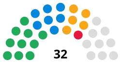 Since the last boundary changes in 2019 the council has comprised 32 councillors representing 24 wards, with each ward electing one, two or three councillors. Elections are held every four years.[29]