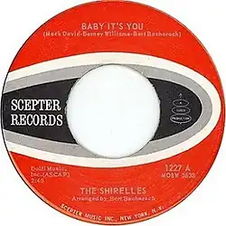 "Baby It's You" is a song written by Burt Bacharach (music), Luther Dixon (credited as Barney Williams),[1] and Mack David (lyrics). It was recorded by the Shirelles and the Beatles and was a hit for both. The highest-charting version of "Baby It's You" was by the band Smith, who took the track to No.5 on the US charts in 1969.[2]