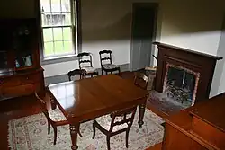 Oak and black ash beams and joists were used in the framing. Much of the lumber, such as pine, ash, and tulip which went into the finishing of the house was harvested from the adjacent woodlands. The house was heated by three main level fireplaces, each with a black walnut mantel and paneling. The fireplaces are no longer operational; however, the cooking crane hardware that presently remains within one indicates it would have done double duty as the original family cooking fire.