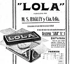 Nevertheless, it was not until 1875 when Bagley entered to the food market. That year, the company started producing biscuits after the Government of Argentina exempted the company from the custom duties so they could import the necessary machinery to produce food. Until then, cookies and biscuits were imported from the United Kingdom. The first biscuit produced was named Lola and became an immediate success. The biscuit was also used in hospitals as a food for patients.[9]