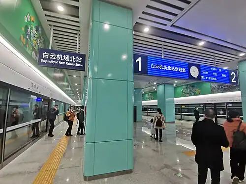 Baiyun Airport North railway station (Chinese: 白云机场北站) is an underground railway station located in Huadu District, Guangzhou, Guangdong, China. It opened with the Eastern section of the Guangzhou–Foshan circular intercity railway on 30 November 2020.[1][2]