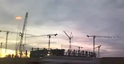 Despite the groundbreaking ceremony taking place in 2011, the construction of the stadium started only in November 2012 with the excavation and backfilling of the stadium area.