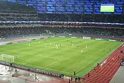 Qarabağ playing against Roma at Baku Olympic Stadium during the 2017–18 UEFA Champions League.