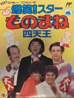 Bakushō! Star Monomane Shitennō (爆笑! スターものまね四天王; "A Hearty Laugh! Imitation of the Four Heavenly Kings Star") is a Nintendo Family Computer life simulation video game that portrays the life of either a musician or a famous performer of the monomane (模倣; "imitation") style of Japanese theatre.[3] The object is to gain popularity while performing concert tours through the fictional city. Celebrity challenges are included in the game; they are considered to be miniature games like swimming and kicking a giant ball into a goal in a manner similar to soccer.[3] While these games are fun to play, losing results in a loss of popularity points similar to performing terribly at a concert.