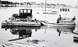 In 1919 Joseph Allan Beek obtained the rights from the city of Newport Beach to provide a ferry service across the Newport Harbor between Balboa Island and the Balboa Peninsula. Before starting the ferry service Beek owned The Ark. The Ark consisted of a giant rowboat with a small engine which Beek used as his first ferry vessel. The Ark carried oars in the event of engine failure. There was no regularly scheduled service and customers telephoned Beek when they needed a ride across the harbor.