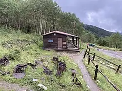Baldy Town, New Mexico is a former mining town in the Baldy Mining District in Colfax County, New Mexico. Baldy Town was established in 1868, to service mining prospects on the East side of Baldy Mountain, notably the Aztec Mine. After Baldy Town's initial high profit boom from 1868 to 1870, Baldy Town suffered a series of booms and busts as investors and prospectors searched for profitable lodes. The town was originally a conglomerate of miner's homes and services in Ute Meadow. Then in 1886, Baldy Town's core was moved to a strip of services just above the Aztec Mill. The new town grew to accommodate hundreds of residents with a store, stables, saloons, boarding houses, a church, small school, and post office.[1][2] In 1895, at the height of its population, Baldy Town was home to around 1,000 residents. Multiple ambitious and extensive expeditions were made from 1870 to 1936 to discover additional gold veins, but only a select few found substantial lodes.[1] By 1941, Baldy Town had been deserted and a majority of its infrastructure sold.[2] In 1963, the eastern half of Baldy Mountain, including former Baldy Town, was donated to the Boy Scouts of America by Norton Clapp. Today, Baldy Town operates as a staffed camp at Philmont Scout Ranch providing a living history program regarding mining as well as logistical support like food resupply for hikers[3]