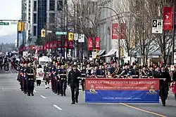 The band has participated in the International Military Concert in the United States state of Washington since the 1990s. It involves the participation of the band, accompanied from Canada by the Naden Band of Maritime Forces Pacific, as well as bands from the United States Armed Forces, which have included in years past: the I Corps Band, the 133rd Army National Guard Band, United States Navy Band Northwest, and United States Air Force Band of the Golden West.[7] Featured music often played at the concert include the two national anthems ("O Canada" and "The Star-Spangled Banner") unit marches (Anchors Aweigh, Royal Artillery Slow March, and Heart of Oak).[8] Contemporary marches are also performed at the concert.[9]
