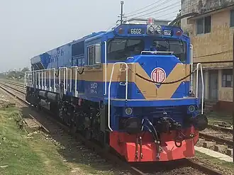 Bangladesh Railway Class 6600 is a class of 1,676 mm gaugediesel-electriclocomotives owned by Bangladesh Railway. There are 40 locomotives of this class, all designed and manufactured by American company Progress Rail's Electro-Motive Diesel subsidiary. Class 6600 locomotives are used on both freight and passenger trains. Those are the strongest and most advanced broad-gauge locomotives in the Bangladesh Railway.[1][2][3]
