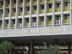 The Bank of Mozambique (Portuguese name: Banco de Moçambique) is the central bank of Mozambique. It does not provide consumer services to general public as a commercial bank. The main responsibility of the bank is governing the monetary policy of the nation and ensuring a safe and stable financial system within Mozambique[3] The Bank of Mozambique (BOM) has the sole issuing powers of currency notes and coins (BOM). The bank is responsible for the supervision of all 22 commercial banks in the country by exercising its power as the central bank of the country.[4] Amid growing inflation and economic liberalization BOM is facing new challenges.[5] Mozambique's privatisation has been one of the largest in Africa.