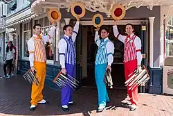 Barbershop music was very popular between 1900 and 1919, and some of the most popular quartets were the Haydn Quartet, the American Quartet, and the Peerless Quartet. Modern barbershop quartets often costume themselves in gaudy versions of the vaudeville dress of this time, with boaters and vertically striped vests.[11] Composer and pianist Scott Joplin incorporated a barbershop quartet into his 1911 opera Treemonisha.[9] The genre gradually faded into obscurity in the 1920s, although barbershop-style harmonies remained in evidence in a cappella forms of traditional black gospel and white gospel.[7][12][13]