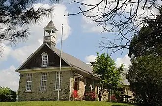 Note. Scott's original log church burned in 1876. Its replacement, built in 1886, remains standing. The church site lies on the opposite side of Lake Roland, outside of this historic district.
