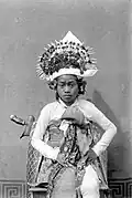 Among these dances is the baris demang, which dates back to the 19th century (a drawing of a performance was acquired by Herman Neubronner van der Tuuk while in Bali). In such a dance, dancers wear costumes similar to those worn by the demang in gambuh performances and carry wooden knives. This dance is usually performed during the Pemayun ritual.[2]