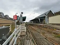 The station as seen from the level crossing (September 2018)