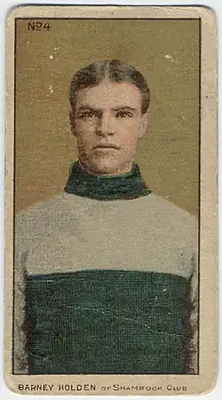Bernard "Barney" Holden (March 21, 1881 – October 27, 1948) was a Canadian professional ice hockey defenceman who played 146 games in various professional and amateur leagues, including the National Hockey Association and International Professional Hockey League. Amongst the teams he played with were the Montreal Shamrocks and Quebec Bulldogs.