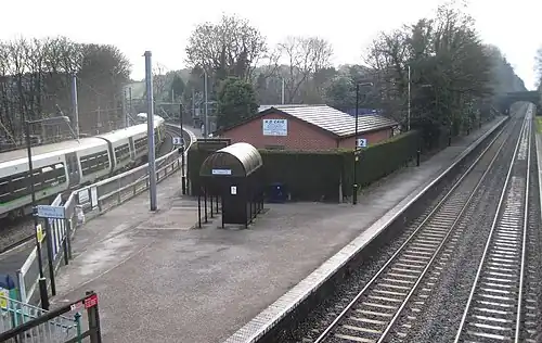 Barnt Green railway station serves the village of Barnt Green, North Worcestershire, England. It is situated 9+12 miles (15.3 km) south west of Birmingham New Street. The station, and all trains serving it, are operated by West Midlands Trains.
