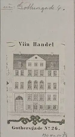The property and wine business was later passed to Hagen's son Frantz Peter Hagen (1804-1874). At the time of the 1840 census, he resided on the ground floor with his wife Edvardine née Gram, their eight children (aged one to 17), the wife's father Edvard Gram, three employees in the wine business (one of them an apprentice, three male servants and four maids.[7] John von Brackte, a traveller from the Danish West Indies, resided on the first floor with his 25-year-old daughter, three male servants and two maids.[8]