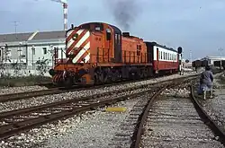 In 1941, several carriages produced by the American factory Budd, that used a new construction technique called tubular design, were assembled at Barreiro.[78] In 1943, extension and remodeling works were carried out.[3] Between June and August 1945, several steam locomotives using diesel instead of coal arrived by ship, which were quickly assembled in the Santa Apolónia and Barreiro workshops, as they were urgently needed due to the coal shortage at that time.[79]