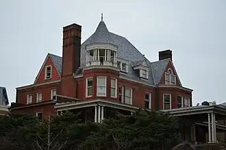 Barringer Mansion is a historic home located at 1404 Jefferson Park Avenue in Charlottesville, Virginia. It was built in 1894, and is a two-story, Queen Anne style brick dwelling. It features an elaborate turret with garland frieze adorning the cornice, three different styles of windows, and Jacobean chimneys. It was the home of Paul Brandon Barringer (1857-1941), noted physician, scientist, executive, and publisher who became chairman of the faculty at the University of Virginia (then equivalent to president), and later the sixth president of Virginia Tech.[3]