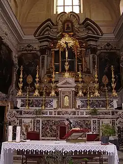 High altarpiece in Santa Maria della Verità, with the reproductions of the altar front and the other stolen marble work.