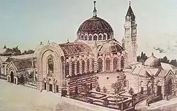 Original project by Fernando Arbós y Tremanti for the basilica, belltower, and pantheon.