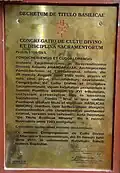 The Holy See granted the status of minor basilica to the church, with a papal brief dated Friday 24 June 2011. This arrived on Friday 29 July 2011 to archbishops house. This was officially announced by Mgr. Antony Anandarayar, Archbishop of Pondicherry and Cuddalore on 29 July 2011. The Papal Nuncio to India, Salvatore Pennacchio (Titular Archbishop of Montemarano) visited the basilica on 2 September 2011 and officially declared the church as a basilica in the name of the holy see.[4] At present the basilica is headed by Rector Rev.Fr. S. Maria Joseph