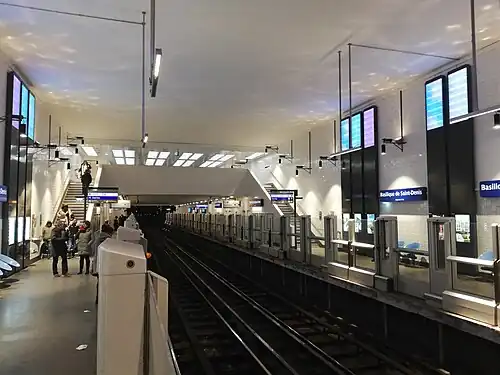 Basilique de Saint-Denis (French pronunciation: [bazilik də sɛ̃ dəni]) is a Paris Métro station on line 13 in the town centre of Saint-Denis, north of Paris. It connects with tram line 1 at two nearby stops at Basilique de Saint-Denis and Marché de Saint-Denis.
