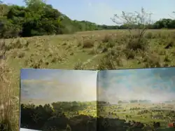 The site of the battlefield in 2013 with (inset) Cándido López's painting of the encounter