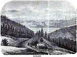 Jäger officer Rezső Tirts describes their flank attack against the final Austrian position on the plateau as follows: But now all at once there was a loud crack of rifles from the Devil's Hole. It was the flank attack of the Újházy jägers, to which six hussar trumpeters blew the jäger march. One after another, their well-aimed shots dropped the artillerymen on the hill. At this moment the Piller Brigade also arrived with swift steps on the battlefield from Szepesváralja and rushed up the hill to the sound of all the drums. All this had an inspiring effect on the Honvéds, and a crushing effect on the Austrians, whose ranks began to waver. Then the Honvéds rushed out of the woods with their bayonets [pointed at the enemy], crying 'Forward! Forward!' from a thousand and a thousand throats, so that it could be heard all the way to Korotnok. The Austrians were in a panic, their ranks broke up, cannons, horses, men, all the Austrian troops went on a wild and disorderly run down the other slope, and at 4 o'clock in the afternoon, on the top of the Branyiszkó Pass, on the little hill near the Chvala Bohu [Praise God in Slovakian] tavern, the Hungarian flag, raised by the Újházy jägers, proclaimed one of the most beautiful Hungarian victories.[11] Several Austrian chevau-légers trapped in the tavern were taken prisoner by a hussar with the nickname Csősz Bácsi (Uncle Field-guard), after he went in and asked the tavern keeper for a drink.[12] Another factor in the Austrian rout was that Major General Deym did not want to press the pass's defense any further,[14] because his troops were flanked by the encircling Hungarian units.[15]