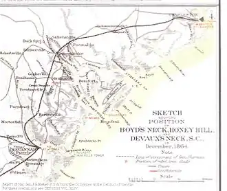 - ^ Jonathan Sutherland (2004). "Honey Hill, Battle of (November 30, 1864)". African Americans at war: an encyclopedia. Vol. 1. ABC-CLIO. pp. 217–219. ISBN 978-1-57607-746-7.