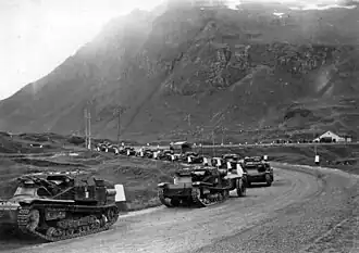 ![]() Column of L3/33 tanks of the 1st Tank Infantry Regiment on the Mont-Cenis plain. | |||||||||