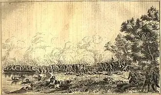 General Conesa, with a very intrepid action, almost ambushed with full surprise a battalion led by lieutenant Celestino Prieto, with 250 men. But the noisy swamp and the Argentine troops singing wrecked the surprise and the Paraguayans fled under heavy fire. After this, general Resquin ordered commander Diaz, Viveros and Prieto to place their troops in strategic positions around the swamps for ambushing and launch counterattacks on the allied armies. 200 men under command of Diaz took the center, while 700 men of Viveros and Prieto were placed in the flanks.[5]