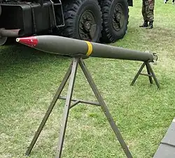 Whether any of the BM-21s were deployed to Quifangondo after 7 November is a matter of dispute.[1] Western and South African sources nearly all reported their presence at Quifangondo during the battle on 10 November.[1] CIA observers attached to Roberto's staff present during the engagement also claimed they were there.[96] However, Monteiro was adamant that his battery at Quifangondo did not include any BM-21s, only six-man-portable, single-tube Grad-Ps, which utilised the same ammunition but were not capable of firing multiple projectiles in salvo.[1] FAPLA sources do not generally acknowledge the combat deployment of the BM-21 until the 9th Brigade's final offensive on Caxito later in the month.[96] One Soviet source suggests the BM-21s were not deployed along the frontlines at Quifangondo, but to the rear, alongside the reserves.[105] British historian Alexander Hill wrote that Monteiro's Grad-Ps were deployed to Quifangondo on 7 November, and were already there by the time the six BM-21s arrived on 10 November.[107] Hill maintains that the two weapon types were sometimes confused in accounts of the battle, but both were present in the FAPLA lines.[107]