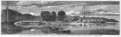 The Army transports, accompanied by its gunboats, had in the meantime arrived at Ashby Harbor, near the midpoint of the island. At 15:00, Burnside ordered the landings to begin, and at 16:00 the troops were reaching shore. A 200-man strong Confederate force commanded by Col. John V. Jordan (31st North Carolina), in position to oppose the landing, was discovered and fired on by the gunboats; the defenders fled without any attempt to return fire.[26] There was no further opposition. Almost all of the 10,000 men present were ashore by midnight. With the infantry went six launches with boat howitzers, commanded by a young midshipman, Benjamin H. Porter. The Union soldiers pushed inland a short distance and then went into camp for the night.[27]