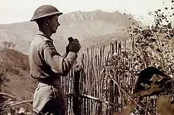 The leading elements of the division—the 3rd/10th Baluch Regiment—crossed the Marano River on the eastern border on the night of the 17th, with the 1st/9th Gurkha Rifles moving through them to attack Points 343 and 366 near Faetano. These small hills—just behind the river—were held by two battalions of the 993rd Grenadier Regiment. The first—Point 343—was taken at 05:00, but the force occupying Point 366 had to fall back after running low on ammunition.[17] Rifleman Sher Bahadur Thapa was posthumously awarded the Victoria Cross for holding the crest of the hill single-handed for two hours, allowing two companies to withdraw in safety, before being killed whilst trying to rescue another wounded Gurkha.[18]