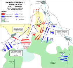 The Battle of Wittstock was fought on 4 October 1636, near Wittstock in northern Germany, during the Thirty Years' War. A Swedish army commanded jointly by Johan Banér and Alexander Leslie won a decisive victory against a combined Imperial-Saxon army, led by Count Melchior von Hatzfeld and John George I, Elector of Saxony.