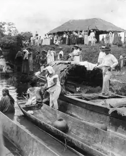Baure residents photographed on the banks of the Blanco River in 1909.
