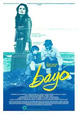 Bayo is a 1985 Canadian drama film, directed by Mort Ransen and written by Ransen, Terry Ryan, and Arnie Gelbart.[5] The film stars Ed McNamara, Patricia Phillips, Stephan McGrath, Hugh Webster, Cedric Smith, Patrick Lane, and Maisie Rillie. Set in Tickle Cove, Newfoundland and Labrador, the film focuses on the relationship of Bayo (McGrath), a young boy living with his single parent Sharon (Phillips). When Sharon's long-estranged father Phillip (McNamara) returns, Bayo's fascination with his grandfather threatens to upend Sharon's plan to move to Toronto.[6]