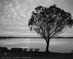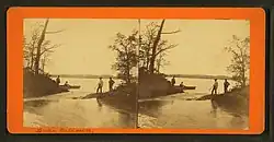 Bde Maka Ska and the wetlands surrounding it provided game, fish, and wild rice for Dakota in the years before contact with European settlers. No permanent settlement was observed before 1828.[13][14] Between 1829 and 1839, Bde Maka Ska was the site of the Bdewákhathuŋwaŋ Dakota agricultural village known as Ḣeyate Otuŋwe.[15] This village began as an effort by Indian agent Lawrence Taliaferro to encourage Dakota living in the area to adopt European agricultural practices.[13] The Dakota chief Cloud Man led the village, which by 1832 produced enough corn to trade with the settlers.[16] The Dakota in Ḣeyate Otuŋwe not only traded corn but also shared it with neighboring bands.[15] Ḣeyate Otuŋwe even became a popular tourist destination for white travelers starting in 1835. George Catlin painted the village in 1836.[17]