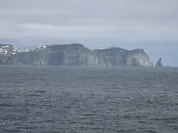 In 2002 a nature reserve was established that covers all of the island, except 1.2 square kilometres (0.46 sq mi) around the meteorological station. The reserve also includes the adjacent waters of a four-nautical-mile (seven-kilometre) radius from the coast.[10] In 2008, the decision was made to extend the reserve to a radius of 12 nautical miles (22 kilometres) from the coast covering 177 square kilometres (68 sq mi) on land and 2,805 square kilometres (818 sq nmi) of sea area.[11] Today, the island's only inhabitants are the nine[12] staff members of the Norwegian meteorological station and radio station at Herwighamna. This station carries out meteorological observations and provides logistic and telecommunication services, including a radio watch on the HF channels 2182/2168 and the VHF channels 16/12. Weather forecasts are transmitted from the station twice daily, announced on HF 2182/VHF 16 at 10:05 am/pm UTC. A non-directional beacon at 74°30'7.0"N 019°5'10.2"E, identification BJO transmits on 316 kHz (Morse identifier - . . . . - - - - - -).[13] The station also has landing platforms for use by helicopters of the Norwegian Coast Guard, the Norwegian 330 Squadron, and the Governor of Svalbard. The Norwegian Polar Institute conducts annual expeditions to Bear Island, mostly concerned with ornithological research. Several other research projects, mostly pertaining to geography and climatology, are carried out less regularly. There are very few opportunities for individual travel to Bjørnøya.