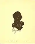 Sherman often compared herself to August Edouart, a well-known 19th century French silhouette artist who kept books with an extra copy of each sitter's silhouette. This not only allowed Edouart to keep a visual record of his work, but also allowed him to cut copies of silhouettes for sale at a later date.[6] Beatrix Sherman emulated August Edouart by numbering or making a notation on the back of each of her silhouettes, enabling her to create an extensive personal archive that included both silhouettes and her sitter's autographs. Often she would write comments on the verso of the silhouette noting both the location and anything else of interest about the sitter or the process of cutting the silhouette. Sherman's use of scissors in lieu of a camera created a collection that documented society in both an old fashioned and personal way. She even began to experiment with larger silhouettes, and in Fall of 1925, Beatrix Sherman advertised in The New Yorker, offering to cut not only single but also family silhouettes to be made into Christmas cards.