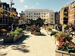 Beaumont Hotel seen from Brown Hart Gardens, in 2015
