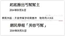 - ^ a b c "網民舉報「美容丐幫」" [Internet users reported beauty beggars]. Hong Kong Daily News. 31 August 2014. Archived from the original on 2 April 2015. Retrieved 18 March 2015.