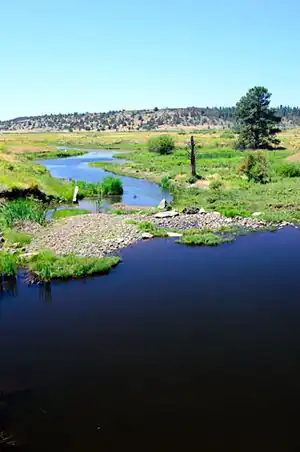 Beaver Creek is a tributary of the Crooked River in the U.S. state of Oregon. It is formed by the confluence of its two forks in southeastern Crook County, a sparsely populated part of Central Oregon. North Fork Beaver Creek flows south and then west around Laughlin Table. South Fork Beaver Creek drains the slopes of Snow Mountain and Funny Butte in southwestern Grant County before joining the North Fork.[3]